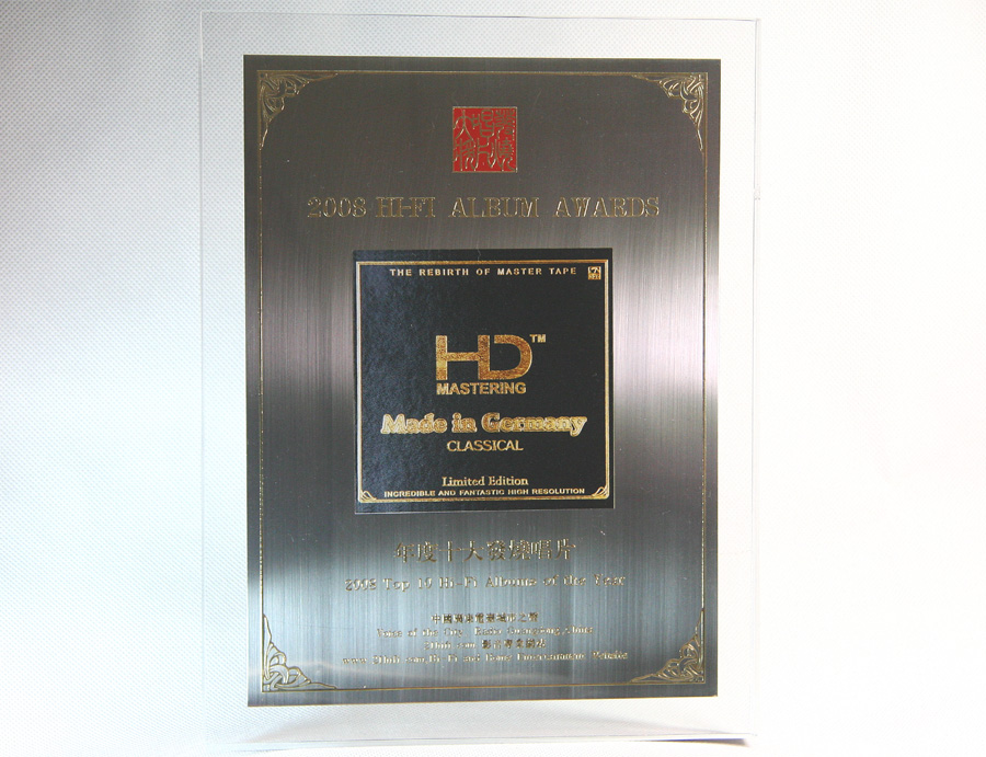 中、德两国音乐人"跨文化交流"合作的经典录音,首创HD直刻玻璃母盘工艺,用超快速激光刻录入音轨,完好保存了音乐音响的音效和原声,创造性的解决了困扰录音工程界几十年的"录音载体重放递次衰减"的难题。