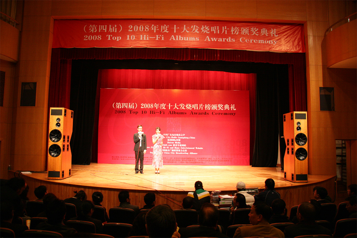 大奖结果于日前在广州星海音乐厅举行的“2008年度十大发烧唱片榜颁奖典礼”上公布。为了更好、更真实还原作品的风采,"颁奖音乐会"特别选用总值数百万元的Hi-END级发烧器材:以英国PMC鉴听扬声器旗舰型号BB5 / XBD主动版,配合加拿大拜事通BCD-1