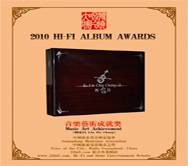 2010年度十大发烧唱片榜由广东省音乐家协会、中国广东电台城市之声、21hifi.com影音专业网站、海润国际传媒集团主办。作品的评选,依一贯的宗旨,以唱片的"音乐艺术表现、创新音乐元素、录音制作水平"为基础,综合音乐作品创作、演唱演奏水平、录音艺术品位等,评选出2010年度十大发烧唱片奖作品及各单项奖专辑。 |