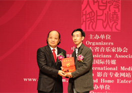 音乐会现场: 天乐唱片国际有限公司董事总经理 陈波儿先生获颁奖项 (由 中国艺术家协会副秘书长.音乐教育家 王勇先生颁奖)