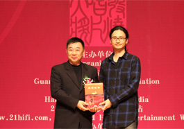 音乐会现场: 广州瑞格文化传播有限公司录音师宁俊先生获颁奖项 (由 广东省音乐家协会副秘书长乔建军先生颁奖)