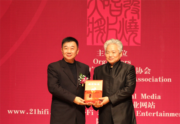 音乐会现场:当代五弦琵琶大师方锦龙先生获颁奖项 (由 广东省音乐家协会副秘书长乔建军先生颁奖)