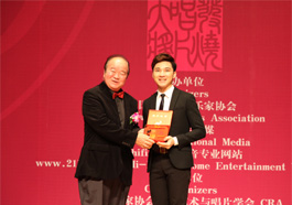 音乐会现场:知名歌手钟明秋先生获颁奖项 (由海润国际传媒广东执行董事端木达先生颁奖)