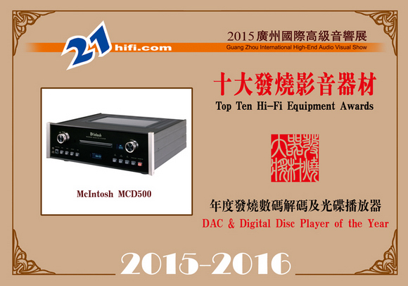 年度发烧DAC数码解码及光盘播放器:McIntoch MCD 500