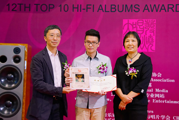 颁奖会现场:广东星文文化传播有限公司宣传总监陈映腾先生获颁奖项 (由广东省音乐家协会副秘书长唐桂珍女士、广州永通音像制作有限公司董事总经理陈英明先生颁奖)