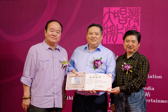 颁奖会现场:广东龙源音像有限公司董事长田峰先生获颁奖项 (由广东省音乐家协会荣誉主席刘长安先生、海润国际传媒广东执行董事端木达先生颁奖)