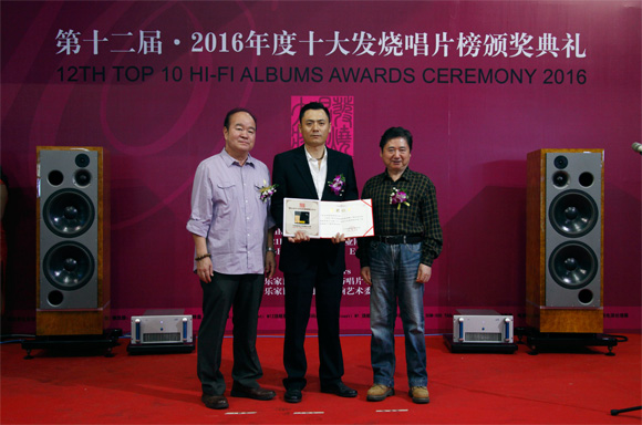 颁奖会现场:广东龙源音像有限公司市场总监徐泽伟先生获颁奖项 (由广东省音乐家协会荣誉主席刘长安先生、海润国际传媒广东执行董事端木达先生颁奖)