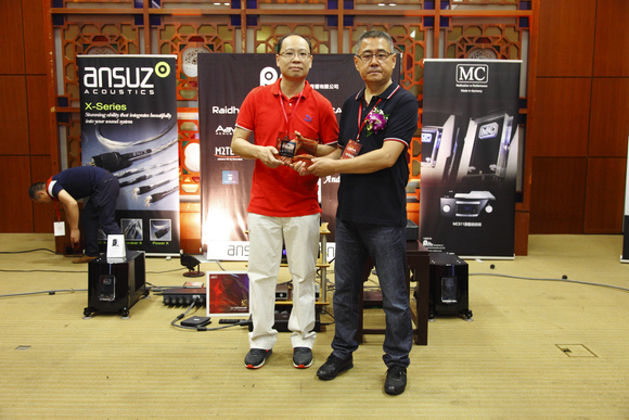 颁奖现场:M2Tech代理"标緻音响有限公司"代表获颁奖项