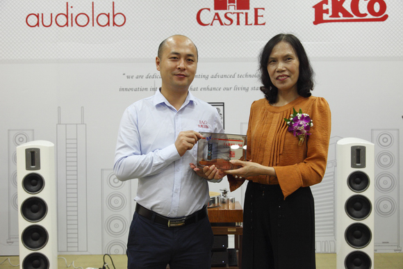 (由广东省声像灯光科技促进会会长彭妙颜女士颁奖)