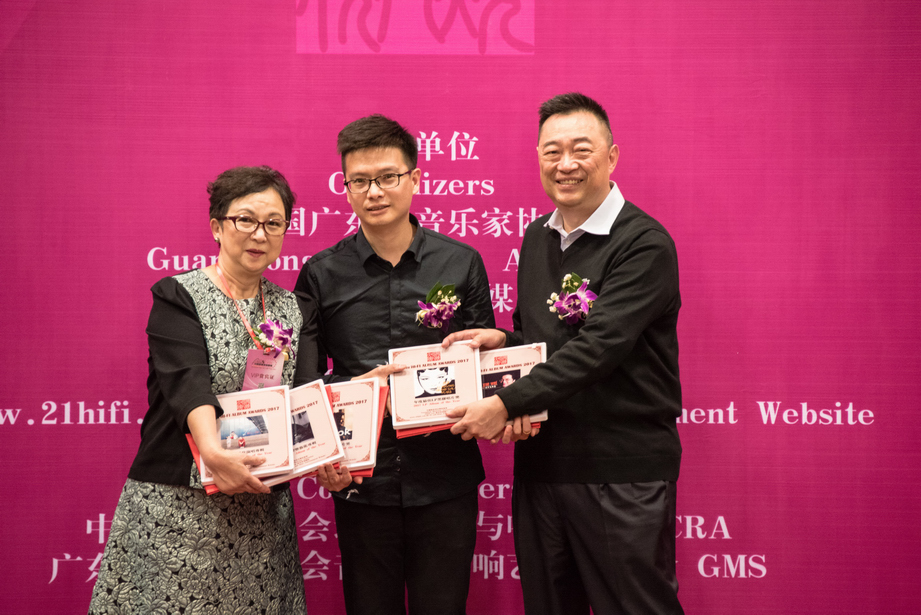 颁奖会现场:广东星文文化传播有限公司版权部经理陈映腾先生获颁奖项 (由《音响技术》杂志总经理钱有基女士、《音响技术》杂志主编大草先生颁奖)