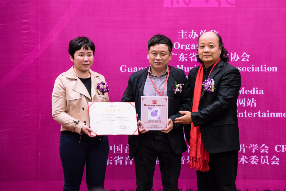 颁奖会现场:广州柏菲音乐制作有限公司总经理黄志华先生获颁奖项 (由广州爱乐集团总裁王勇先生、永通厂销售总监邱莉女士颁奖)