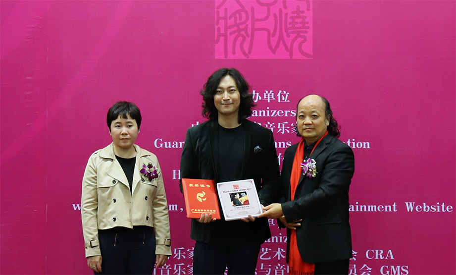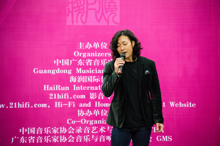 颁奖会现场:知名歌手许乐先生获颁奖项 (由广州爱乐集团总裁王勇先生、永通厂销售总监邱莉女士颁奖) 知名歌手许乐先生现场演绎了获奖专辑内的作品,充满魅力的磁性歌声获得了观众报以热烈的掌声!