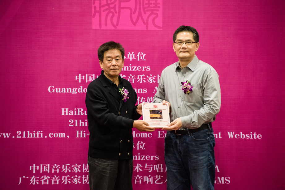 颁奖会现场:颁奖嘉宾广东省音乐家协会主席唐永葆先生 与 马濬先生的儿子马兆坡先生合影