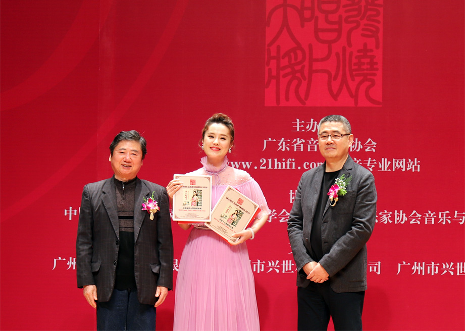 (由广东省音乐家协会名誉主席刘长安先生、中央电视台总录音师.国家一级录音师李小沛先生颁奖)