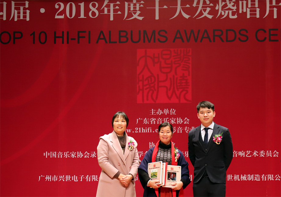 中国唱片广州公司制作部总监邹德民女士获颁奖项 (由广东省音乐家协会副秘书长唐桂珍女士、广州市兴世科技有限公司总经理林子惟先生颁奖)