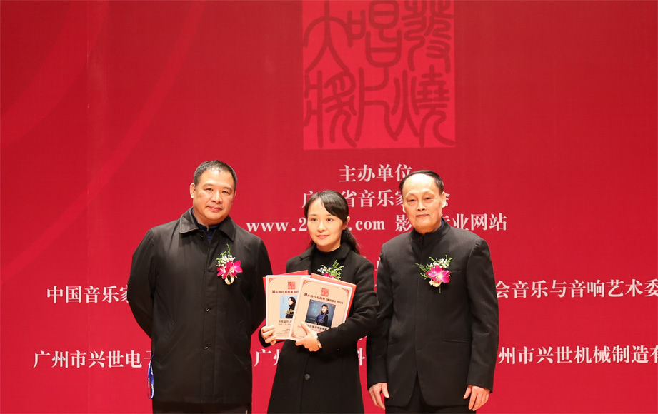 (由广东省音乐家协会音乐与音响艺术委员会会长林劲先生、广州市兴世电子有限公司总经理林颖宗先生颁奖)