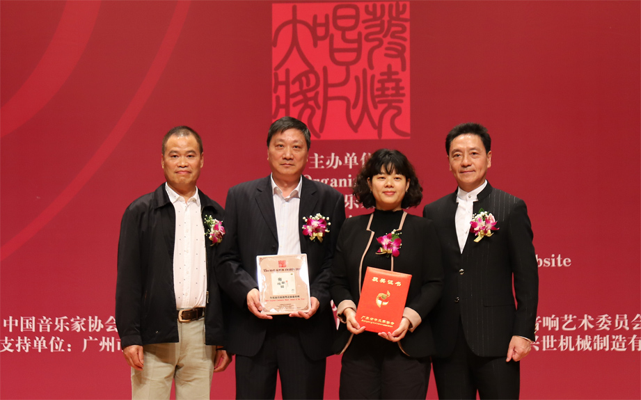 (由广东省音乐家协会副主席.著名歌唱家唐彪、广东省音乐家协会音乐与音响艺术委员会副秘书长李仲颁奖)
