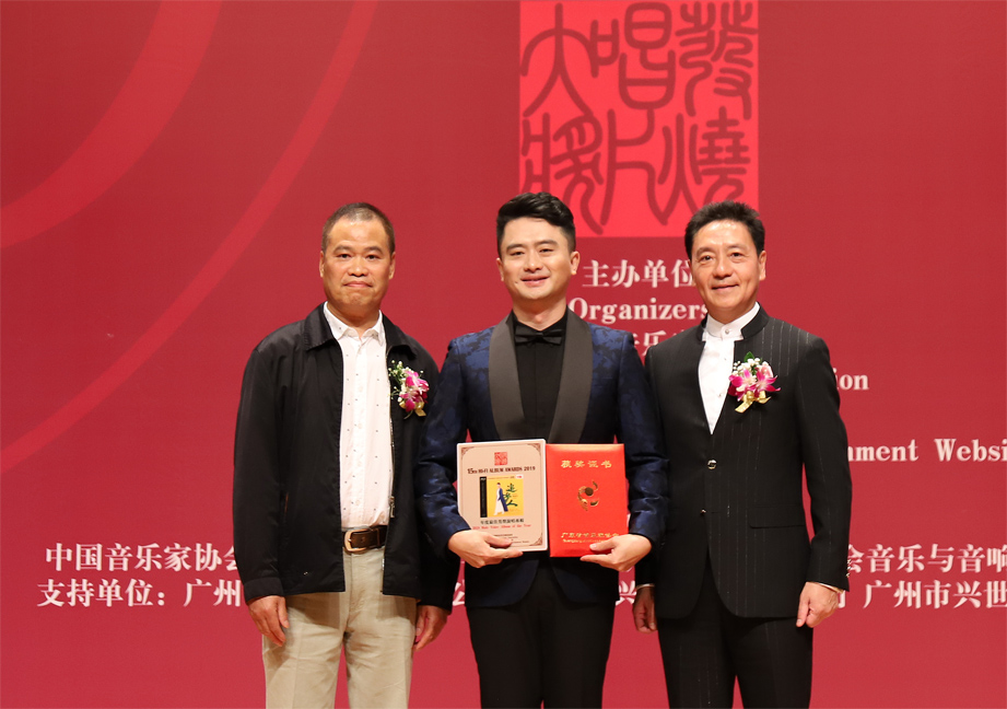 (由广东省音乐家协会副主席.著名歌唱家唐彪、广东省音乐家协会音乐与音响艺术委员会副秘书长李仲颁奖)