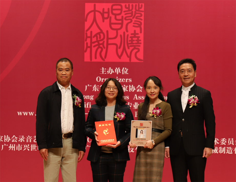 佛山市天艺文化传播有限公司CEO简潞均、总经理库盛霞获颁奖项 (由广东省音乐家协会副主席.著名歌唱家唐彪、广东省音乐家协会音乐与音响艺术委员会副秘书长李仲颁奖)