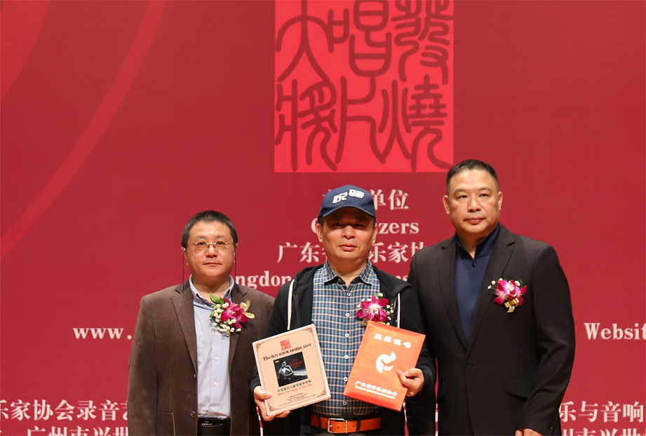 广州市天弦文化传播有限公司总经理伍世骏获颁奖项 (由广东省音乐家协会专职副主席金旭庚、广州市兴世电子有限公司总经理林颖宗颁奖)