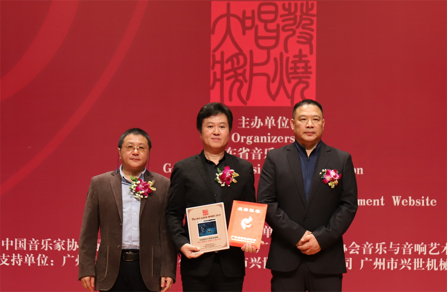 古筝演奏家陈浚辉获颁奖项 (由广东省音乐家协会专职副主席金旭庚、广州市兴世电子有限公司总经理林颖宗颁奖)