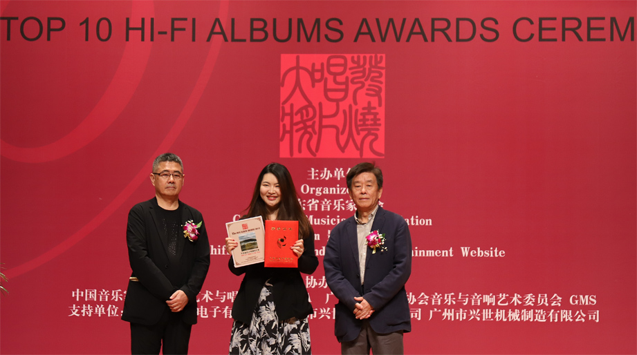 北京国家大剧院古典音乐有限责任公司录音总监周信怡获颁奖项 (由广东省音乐家协会主席唐永葆、中央电视台总录音师李小沛颁奖)