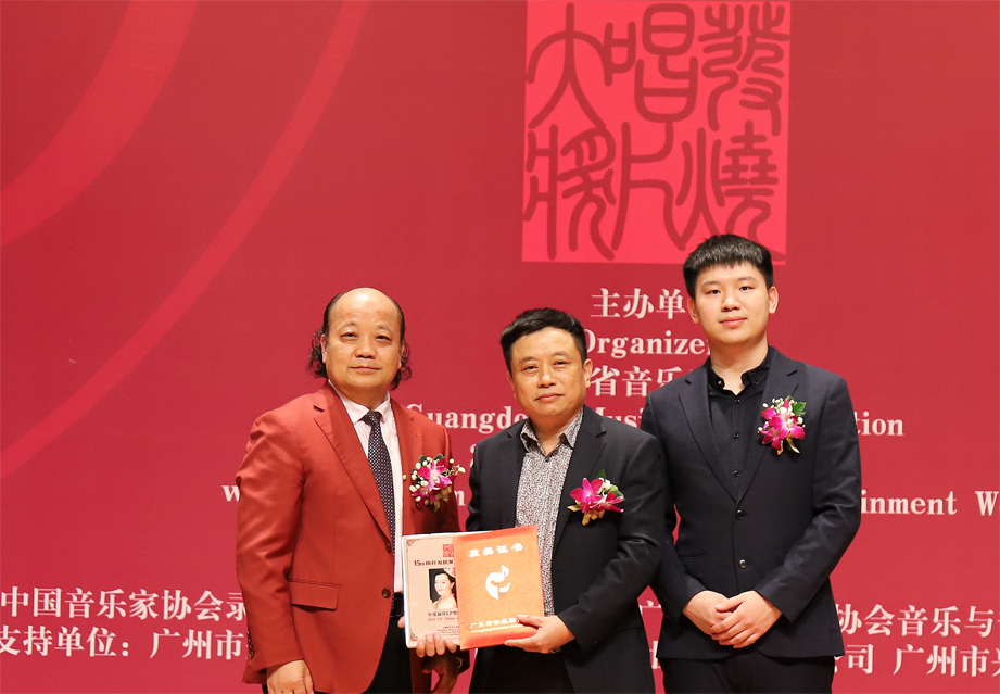 广州柏菲音乐制作有限公司总经理黄志华获颁奖项 (由广东省音乐家协会社会音乐艺术委员会会长王勇、广州市兴世科技有限公司总经理林子惟颁奖)