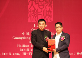 音乐会现场: 广东东昇影视文化传播有限公司音乐总监谢庆义先生获颁奖项 (由广东省音乐家协会副秘书长乔建军先生颁奖)